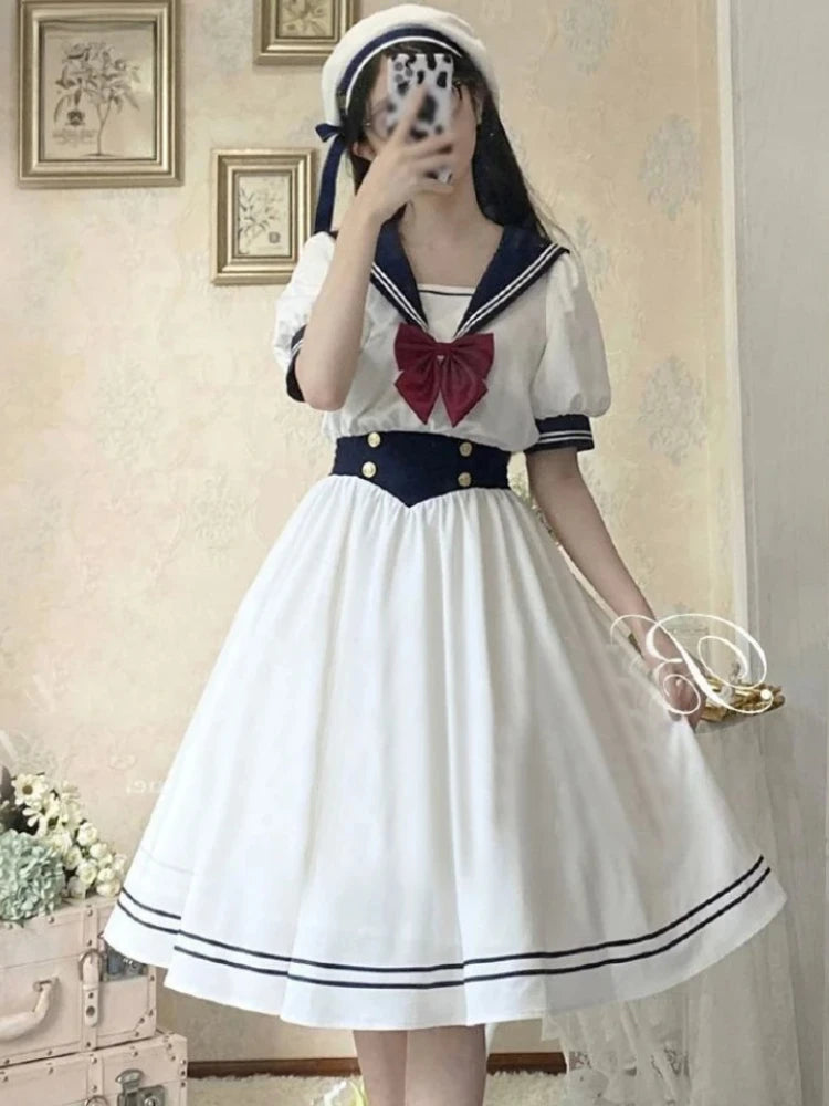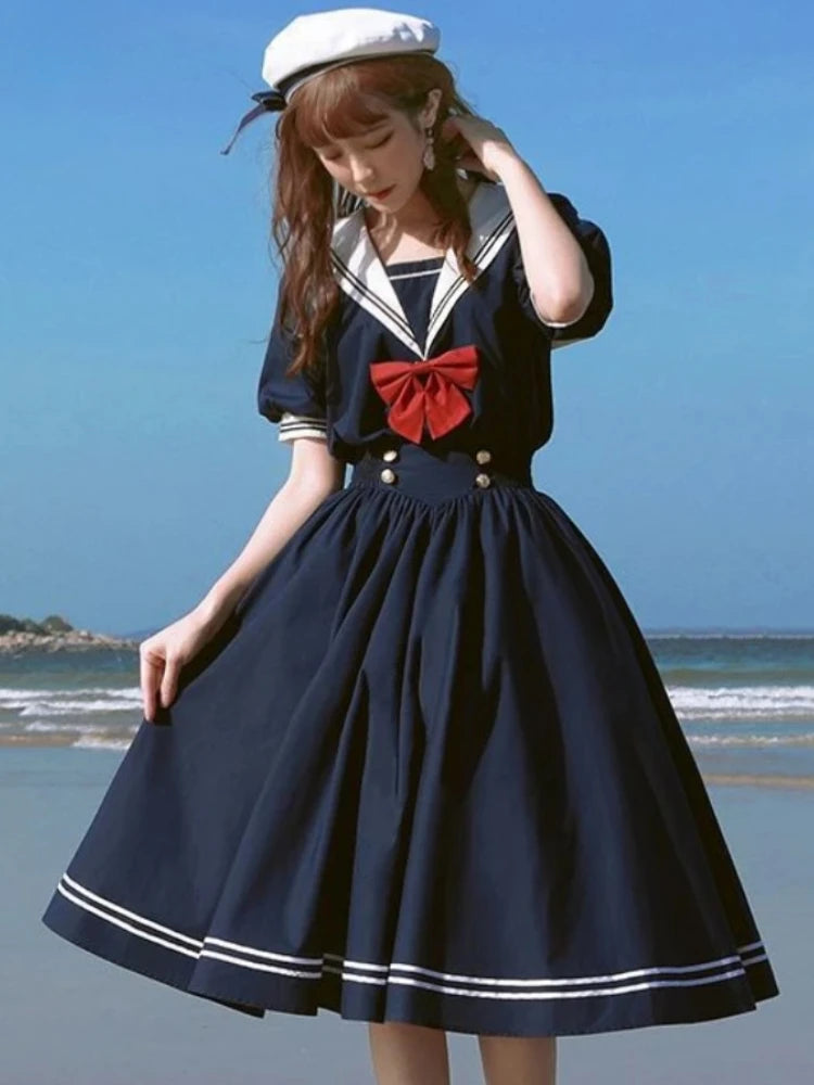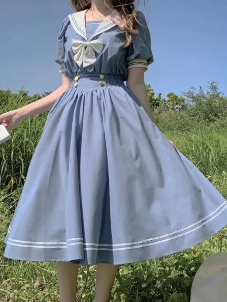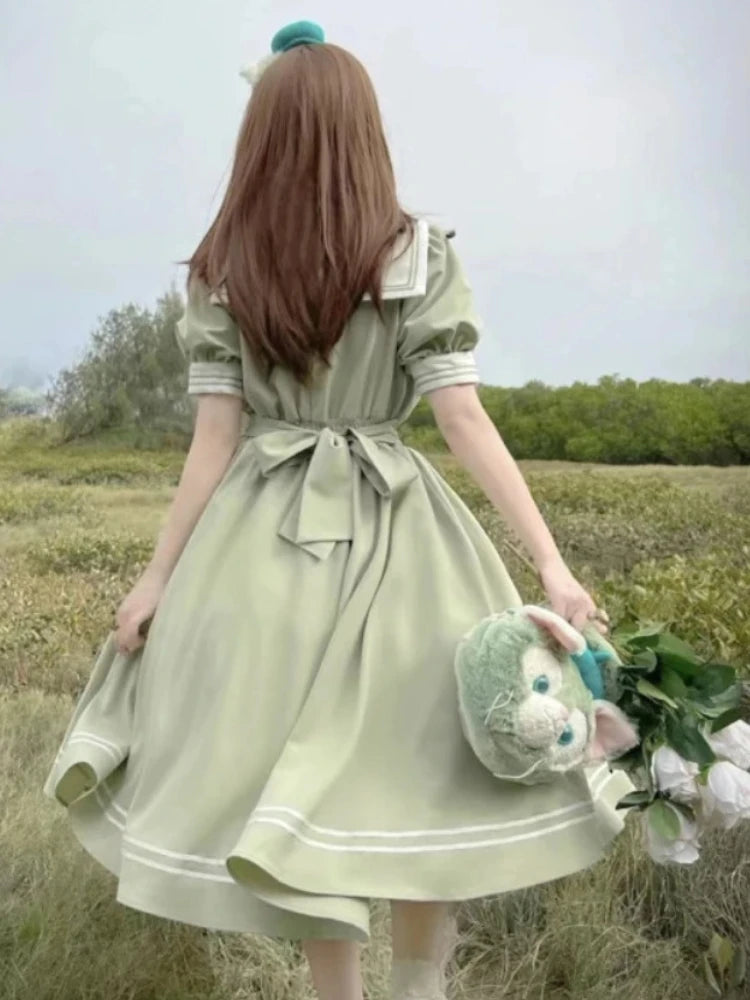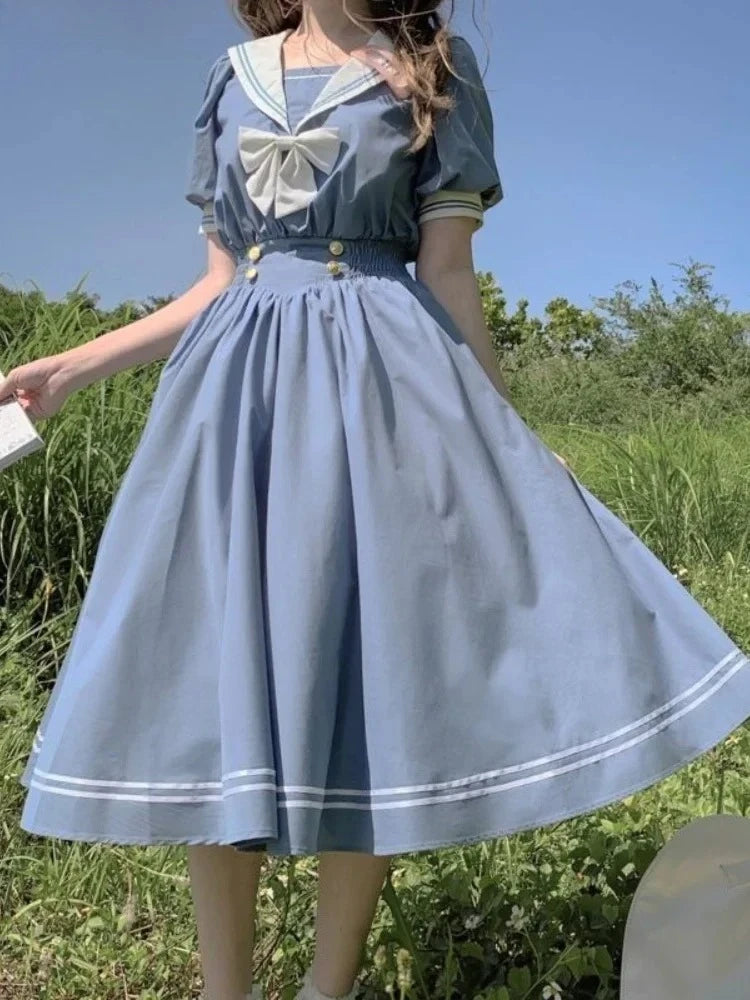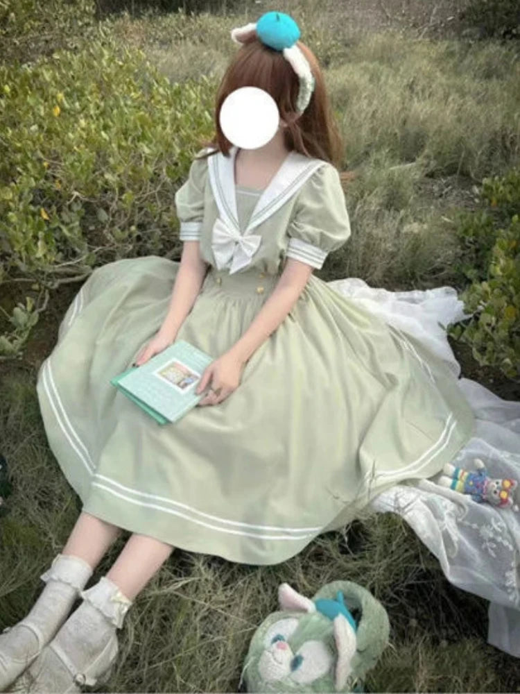 Japanese Vintage Short Sleeves Women Cute Lolita Elegant Midi Dress Sweet Slim Dresses Evening Party Retro Korean Fashion Spring